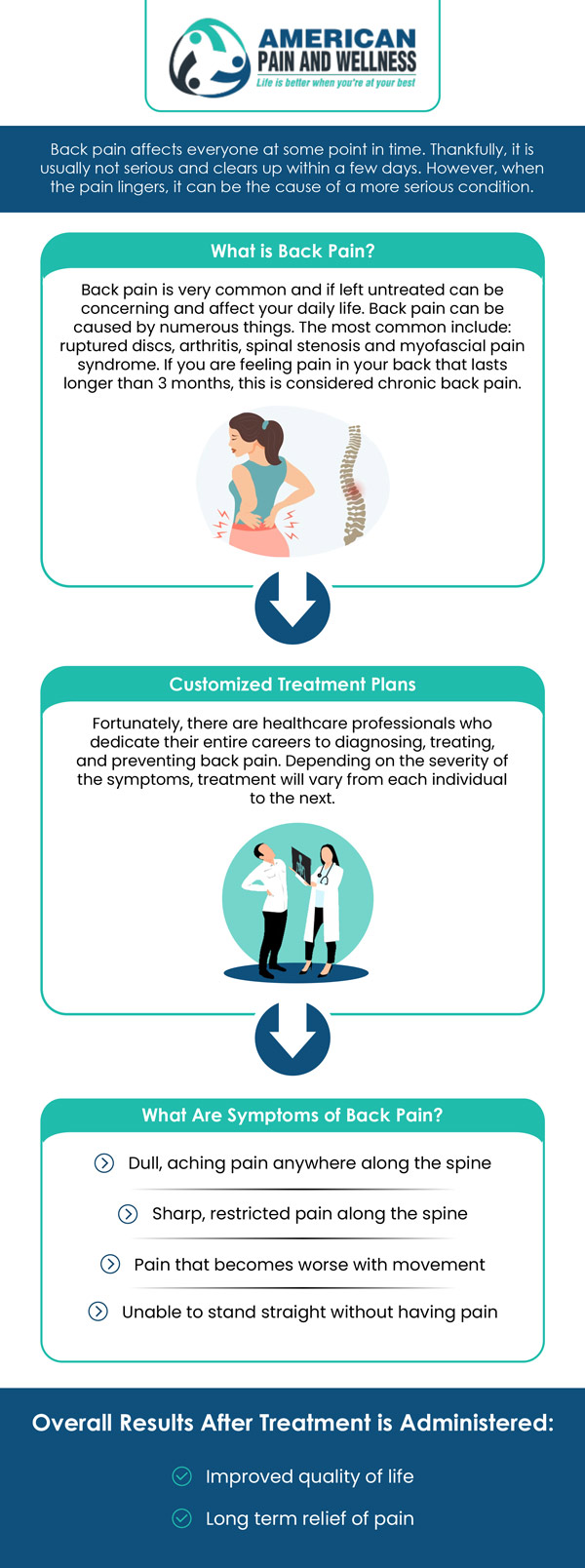 Are you looking for an experienced neck and back pain specialist who can help you relieve your pain symptoms like sharp aching pain in your spine, leg numbness, and dull or burning pain in your back? Look no further than American Pain and Wellness! We have convenient locations to serve you in Allen, TX, and Plano, TX, and provide a variety of treatment options for pain. For more information, please contact us or book your appointment online.